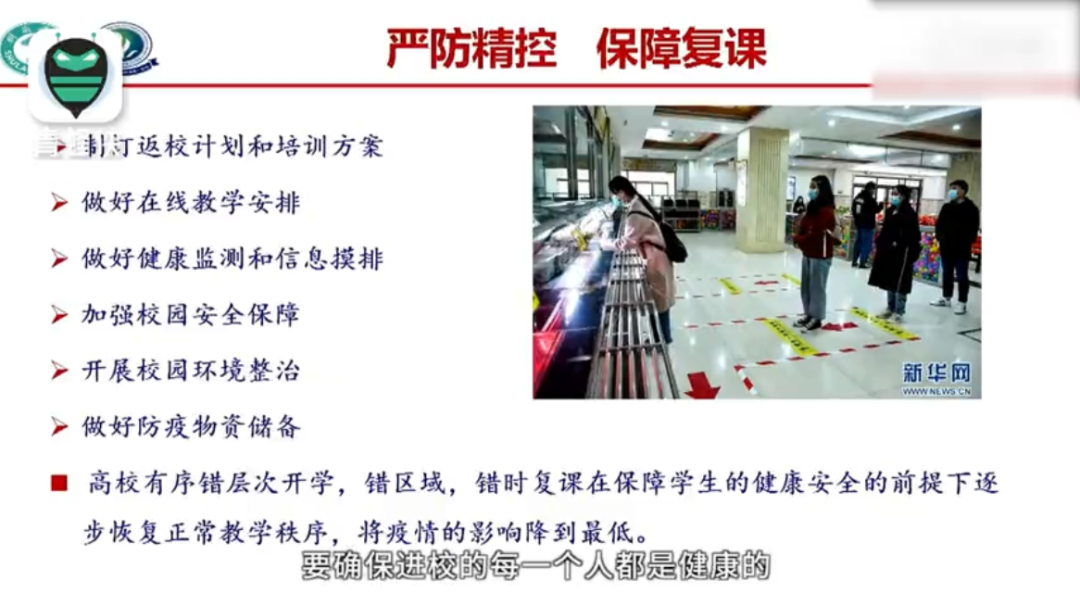 李兰娟表示,自己积极主张复学,因为我们国家总体上从国内来讲,已经有将近一个月“双清零”了,所以说是应该具备复学条件的。但现在我们还是不能放松,她认为学校最重要的是,复学的每一个人回到学校的时候,一定要“清”,就是说进校的人肯定是没有感染的。在这一点,复学的时候,大家都要进流行病学的调查,做到底盘要清。同时,对于每一个在校的学生要做好健康检测,确保进校的每一个人都是健康的、没有感染的,这是保障校园安全的最基本的条件。